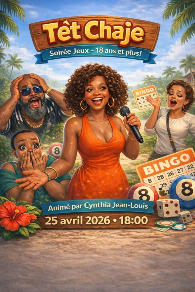 Jerry, passionné de dominos, de bingo et d’autres jeux de société, a adapté le concept à sa façon pour créer des soirées TÈT CHAJE une vraie affaire de fous.